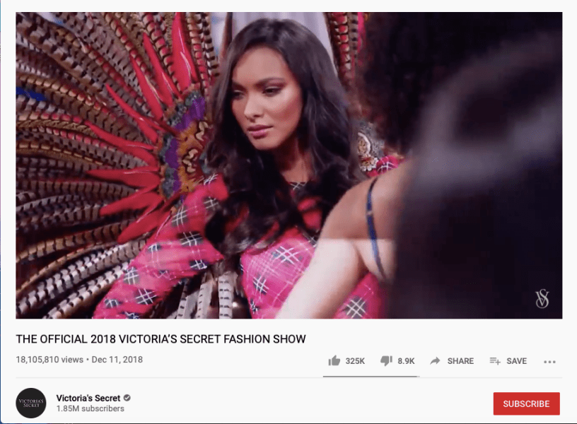 Image: Screenshot of the 2018 Victoria’s Secret Fashion Show on Youtube, taken on 14 May 2020. (See Victoria’s Secret 2018 reference below).